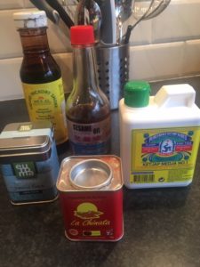 - sesamolie, hoisinsaus en ketjap voor veel Aziatische gerechten