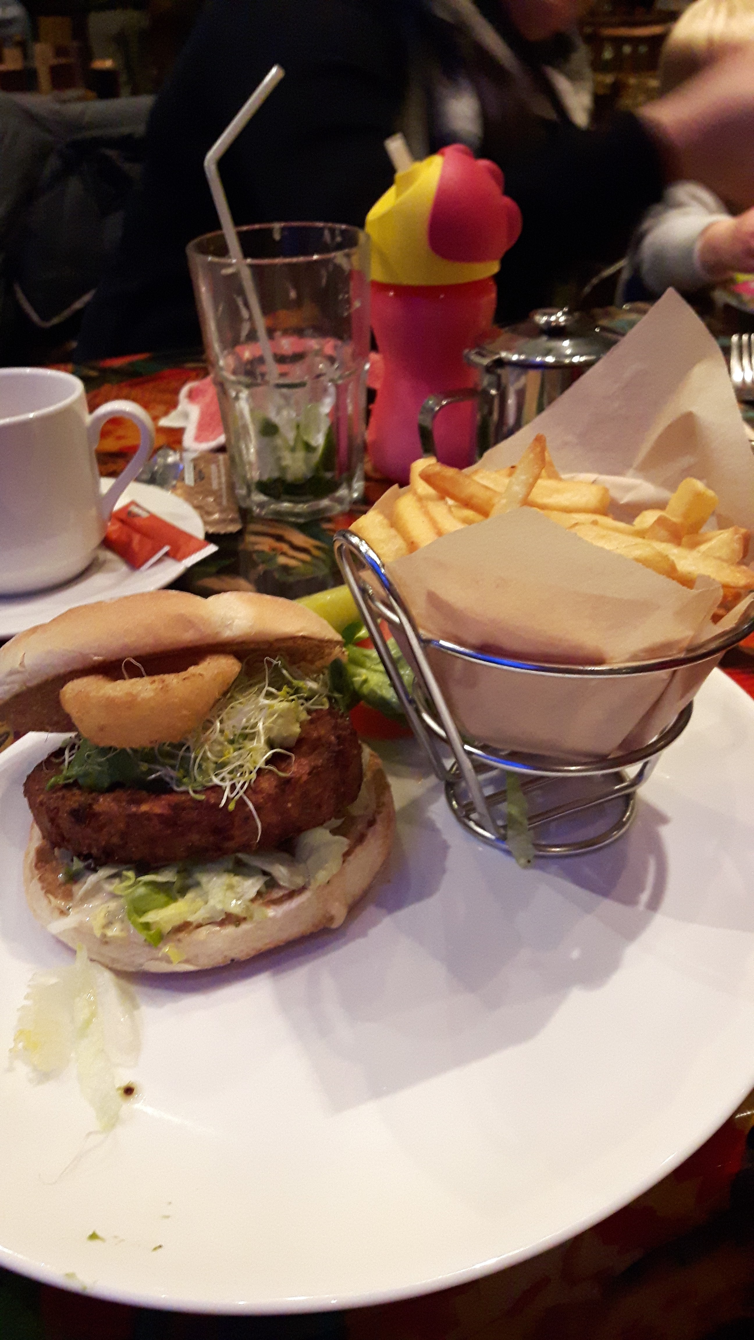 Onze tweede avond aten we bij Annnette’s Diner. Hier stond een superlekkere burger op de kaart op basis van portobello’s en tofu. Ook hier zit officieel mozzarella op maar ik kreeg hem netjes zonder. Toen de bediende vroeg of ik zonder had besteld omdat ik vegan was haalde hij na mijn bevestiging ook nog netjes het bakje saus weg. Super dus en jee, wat was dit lekker. Ik heb zitten smullen.