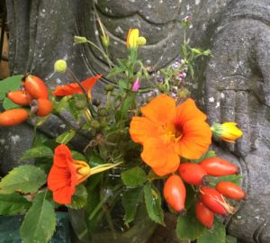 Echter heb ik nog veel te leren: de pompoenen hadden meer mest nodig gehad, de tomaatjes stonden te veel in de schaduw. Maar de frambozen en bessen hebben vele potjes jam opgebracht! De bloementuin heeft superveel vlinders en bosjes bloemen.
