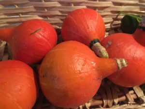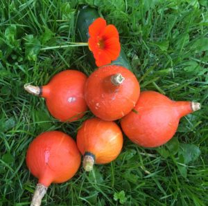 De vruchten van een prachtige zomer. In het voorjaar heb ik een pompoensoep gemaakt en daarvan de zaden opgekweekt. En hoe leuk, nu heb ik geoogst en maak ik weer pompoensoep.