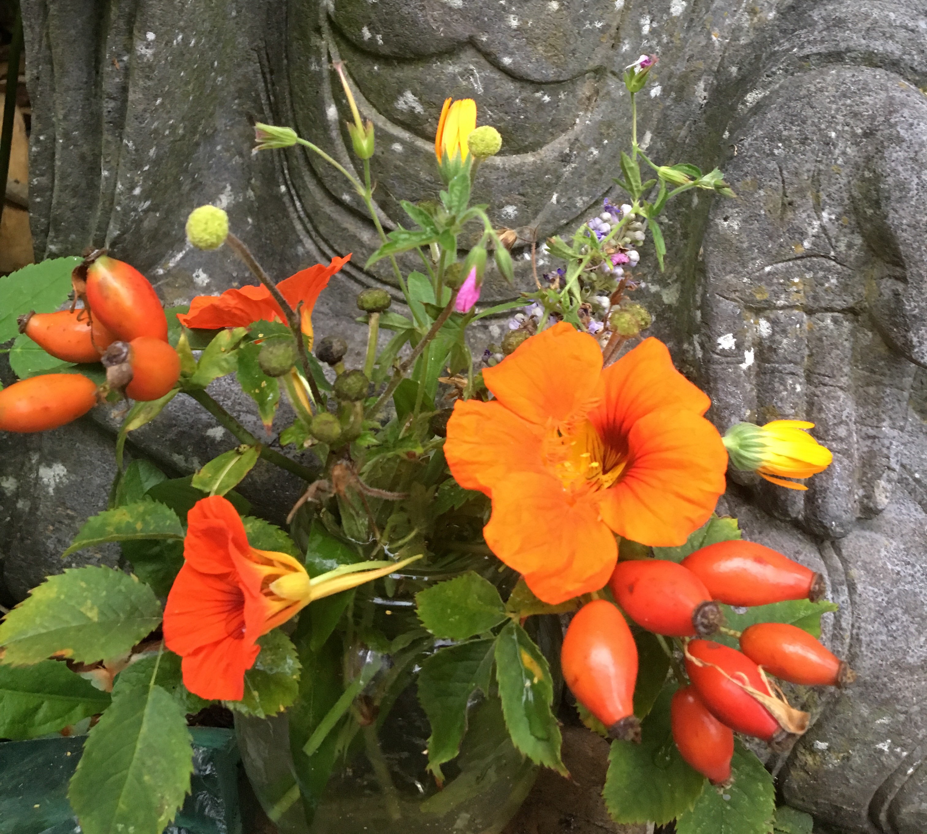 Echter heb ik nog veel te leren: de pompoenen hadden meer mest nodig gehad, de tomaatjes stonden te veel in de schaduw. Maar de frambozen en bessen hebben vele potjes jam opgebracht! De bloementuin heeft superveel vlinders en bosjes bloemen.