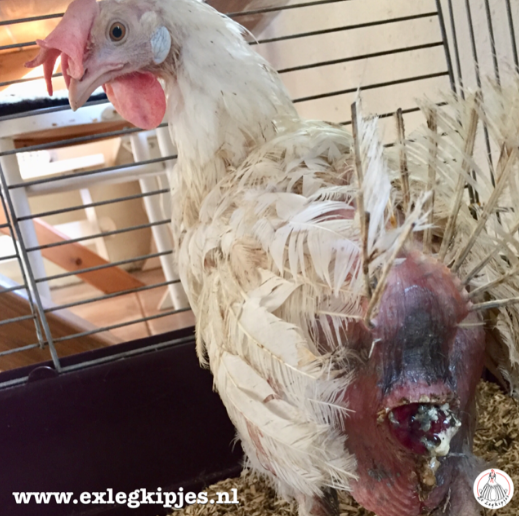 Een kip moet heel hard werken om zo veel eieren te leggen. Om een ei te maken, zijn heel veel voedingsstoffen nodig, vooral calcium voor de eierschaal. Omdat een kip nu zo onnatuurlijk veel eieren moet leggen, is het lastig om genoeg calcium binnen te krijgen waardoor kippen vaak last hebben van osteoporose en makkelijk een bot breken en soms zelfs verlamd raken hierdoor.