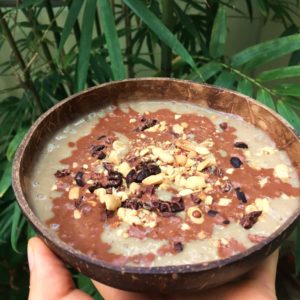 - Van de havermout iets meer dan 1 eetlepel. Maar naar smaak. Dan wordt het iets voller en vullender.