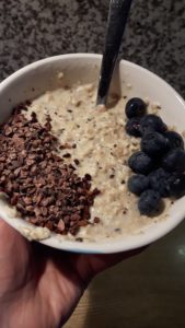 Vaak krijg je na het eten van brood al snel weer trek. Ik verzeker je: dat gebeurt niet na een lekkere kom havermoutpap. Ook kun je havermout de nacht ervoor alvast weken in plantaardige melk of water en bewaren in de koelkast. Zo maak je ‘overnight oats’, vaak lekker als het wat warmer weer wordt. Mmmm… met kaneel, rozijntjes en stukjes appel.