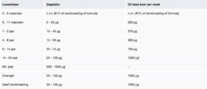 Op de website van de Nederlandse Vereniging voor Veganisme valt te lezen dat je vanaf je 14e levensjaar zo’n 2,8 mcg B12 per dag nodig hebt, dat geldt zowel voor mannen als voor vrouwen. Zwangere vrouwen hebben zo’n 3,2 mcg per dag nodig. Vrouwen die borstvoeding geven zelfs 3,8 mcg per dag. Tekorten ontstaan gemakkelijk terwijl het niet schadelijk is om te veel vitamine B12 binnen te krijgen.